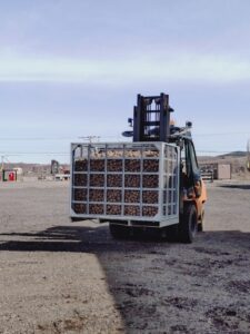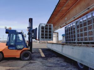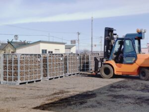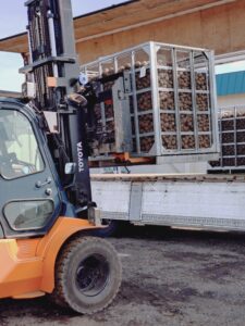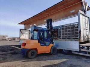 職員の卓越された(!?)フォークリフトの運転技術で